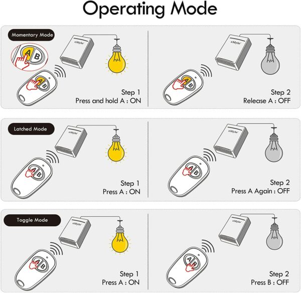 - Commutateur à relais de télécommande sans fil RF 433Mhz avec des performances stables et une sensibilité de réception élevée.