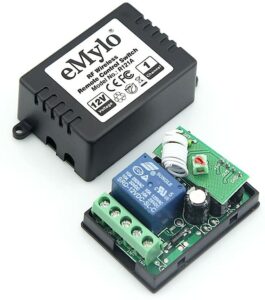 Relais sans fil EMylo DC 12V 1 canal complet avec interrupteur de télécommande RF 433Mhz pour les systèmes domotiques de bricolage et d’autres fins de contrôle à distance.
